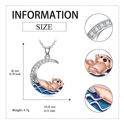 • 🦦Sea Otter Necklace For Women🦦 An adorable sea otter is floating on its backs. Positioned beneath the otter, there are graceful ripples of the ocean. What a a serene and romantic seaside scene! The elegant design of the sea otter jewelry makes it suitable for various occasions. Whether it's worn for formal events, as a daily accessory, 925 sterling silver moon otter necklace will undoubtedly capture attention and receive compliments.