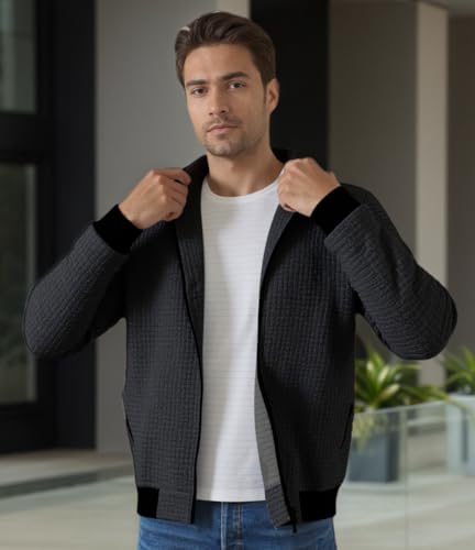 • 【Material】: These lightweight mens varsity jacket feature a textured knit fabric that offers the softness and comfort similar to cotton. Waffle fabric has a very beautiful checkered pattern, which is very distinctive and has a high-end visual effect. At the same time, the fabric has a certain degree of elasticity, making it comfortable to wear and not prone to wrinkles. The stretch material ensures both durability and a pleasant tactile experience.