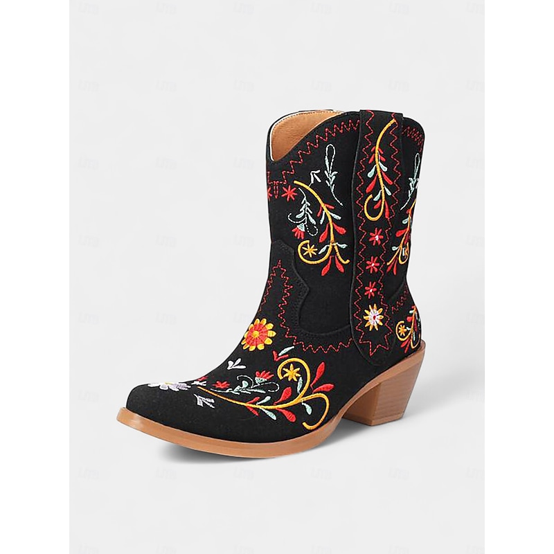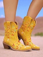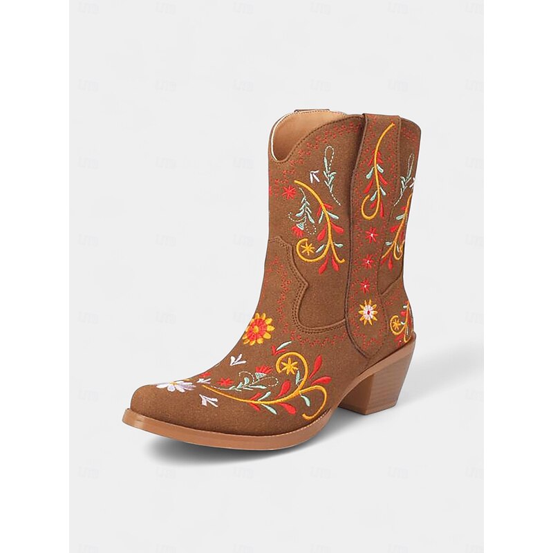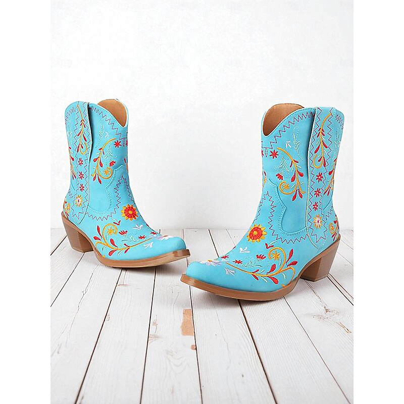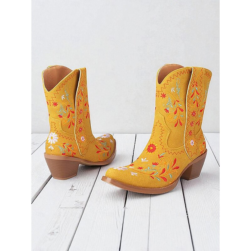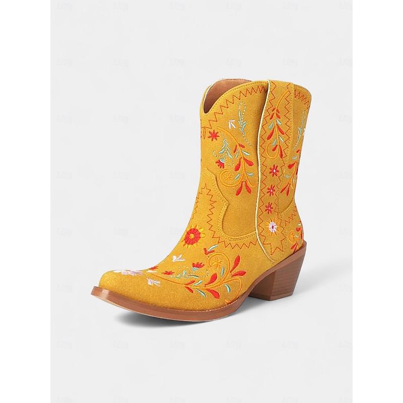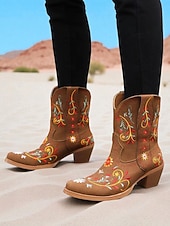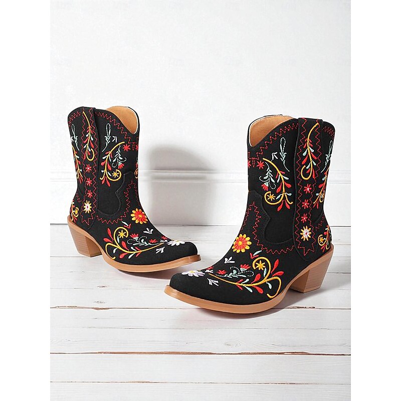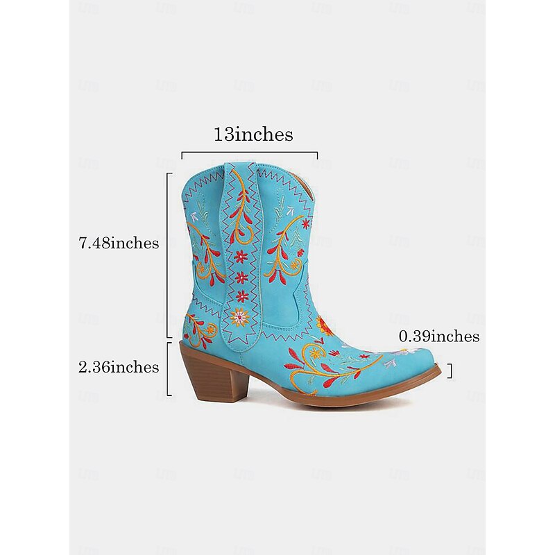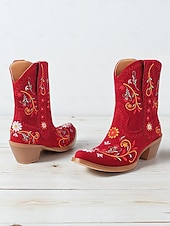 More information about Women's Red Embroidered Western Cowboy Mid-Calf Boots with Block Heel, Stylish Vintage Rodeo Cowgirl Booties for Festivals, Parties & Country Concerts