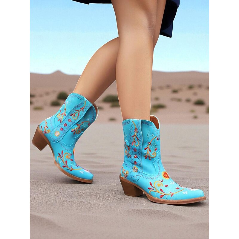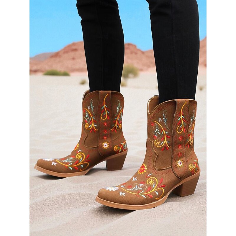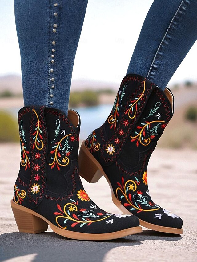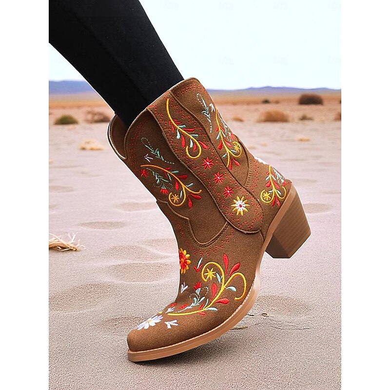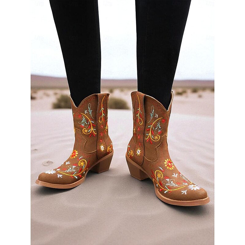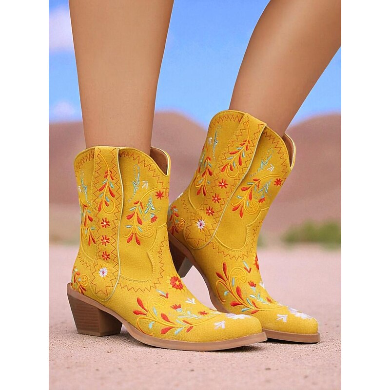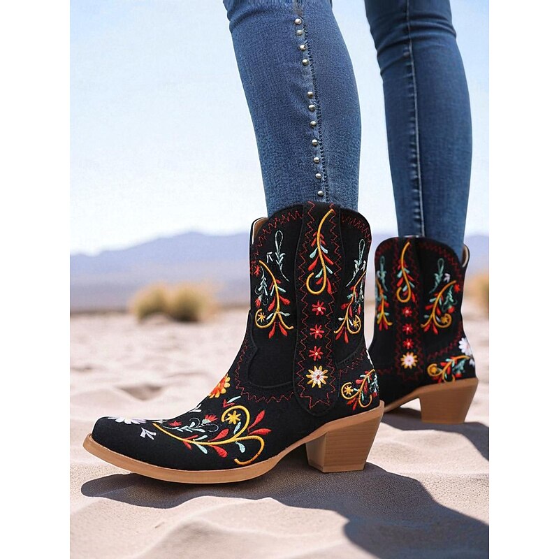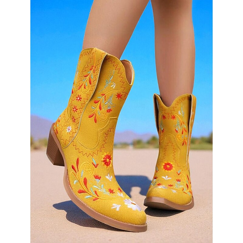 More information about Women's Red Embroidered Western Cowboy Mid-Calf Boots with Block Heel, Stylish Vintage Rodeo Cowgirl Booties for Festivals, Parties & Country Concerts