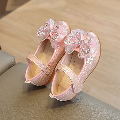Fashion Summer Children Sandals Girls Casual Shoes Flat Bottom Lightweight Rhinestone Ribbon Bow (Pink, 12 Little Child) 5