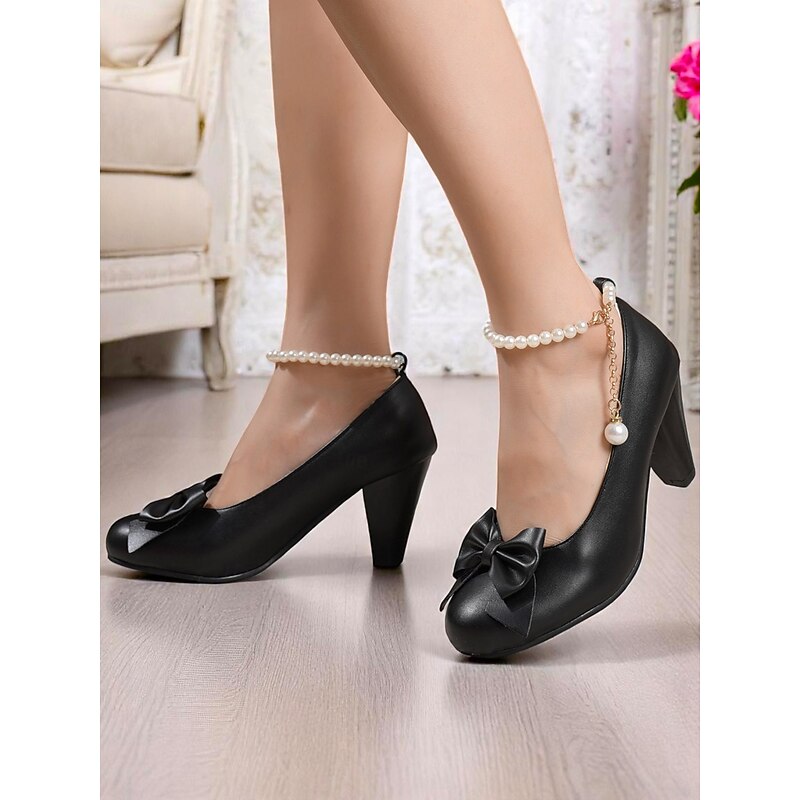 HOT ! Women's Pink Faux Leather High Heel Pumps – Bow Detail with Pearl Anklet, Chic Style for Weddings, Parties, and Special Occasions