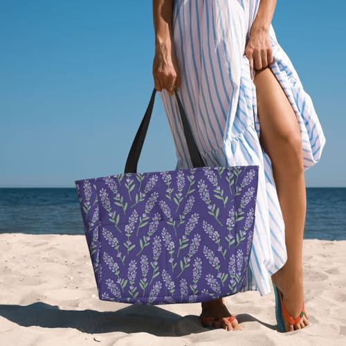HOT ! Lavender Flowers Light Purple Large Beach Bag Waterproof Sandproof Swim Tote Pool Bag For Women With Zipper