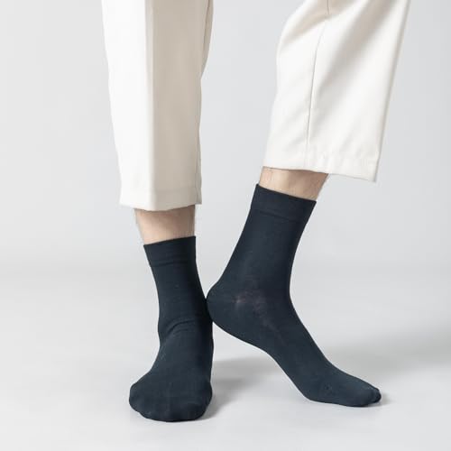 Fabric type: 100% Cotton (Excluding Elastane)Care instructions: Machine WashOrigin: ImportedPattern: SolidMaterial: Our men trouser socks made of high-quality cotton and wash well without shrinking. smooth, breathable, stretchy and moisture-wicking. Keep your feet warm and dry for all day.Elastic Cuffs: The elastic cuffs of our socks provide a secure fit that stays in place throughout the day. Say goodbye to constantly adjusting your socks as they effortlessly stay put.These trouser socks men are wear comfortably in shoes and are not too tight around the ankles, it don't leave indent marks in your skin. Itβs enough cotton and stretchiness for a good fit.Great for All Seasons: Our medium thickness mid-calf socks are perfect for year-round wear. Whether it's summer or winter, these socks offer the ideal balance of warmth and breathability, perfect for any season.Suitable for All Occasions: Perfect soft and breathable crew socks for various sports and leisure activities such as running, cycling, jogging, hiking, playing football, gym exercises, playing golf, etc. A variety of color combinations add a ray of sunshine to your life. Perfect for everyday use. superior materials and excellent craftsmanship ensure long-lasting durability.