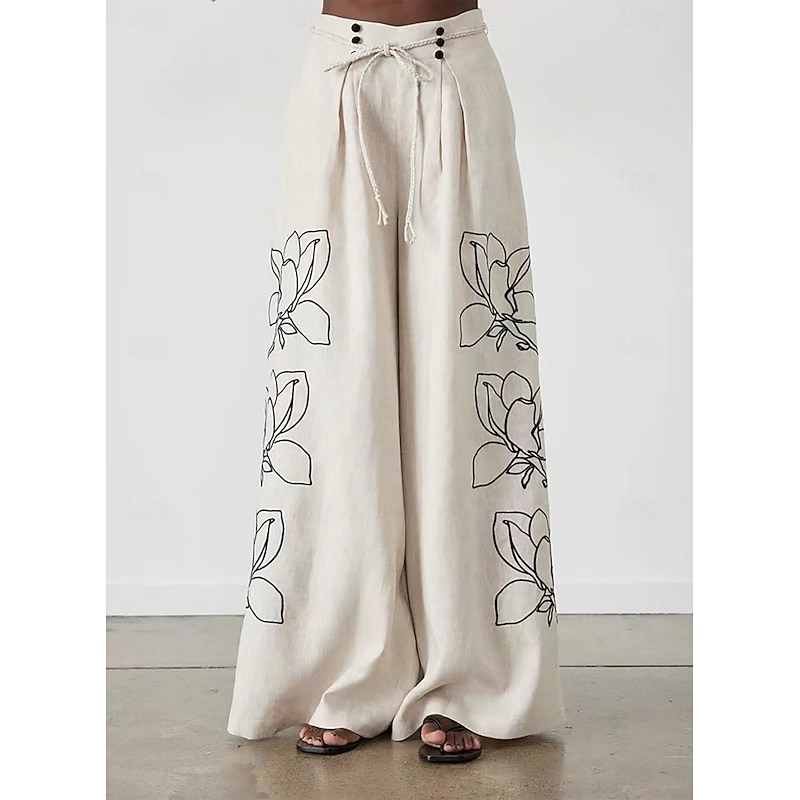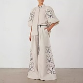 More information about Women's Elegant Vacation Vintage Pants Sets Long Sleeve Lantern Sleeve Shirt Embroidered Collar Floral Vacation Casual Daily Embroidery Set Spring Loose Fit