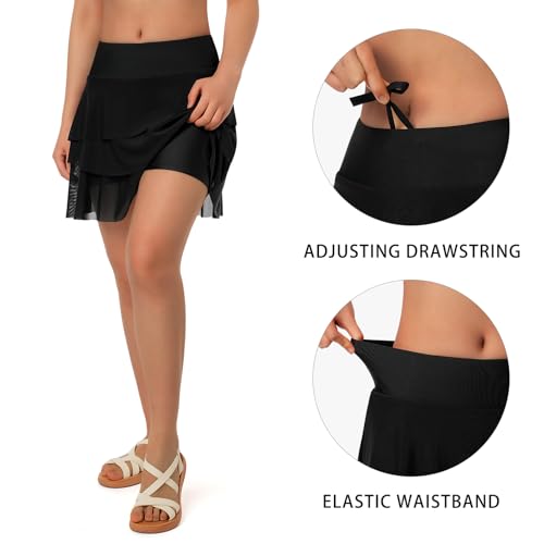 beroy Women's Swim Skirts Skorts Mesh Layered Ruffle Tummy Control Skirt Boxer Liner Bathing Suit Swimsuit Bottoms Pockets 5