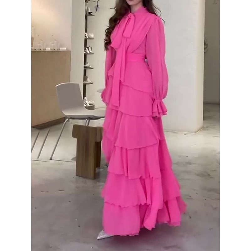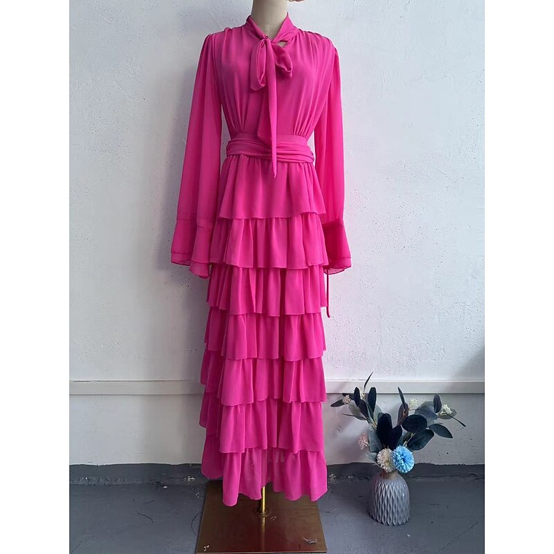 More information about Women's Maxi Dress Cocktail Dress Wedding Guest Dress Chiffon Dress Layered Dress Basic Casual Vacation Daily Regular Fit Plain Long Sleeve Turtleneck Red Spring Fall