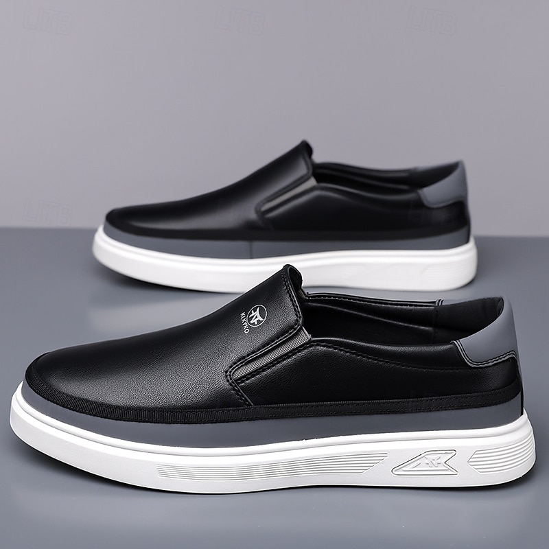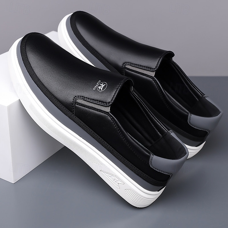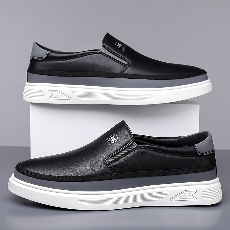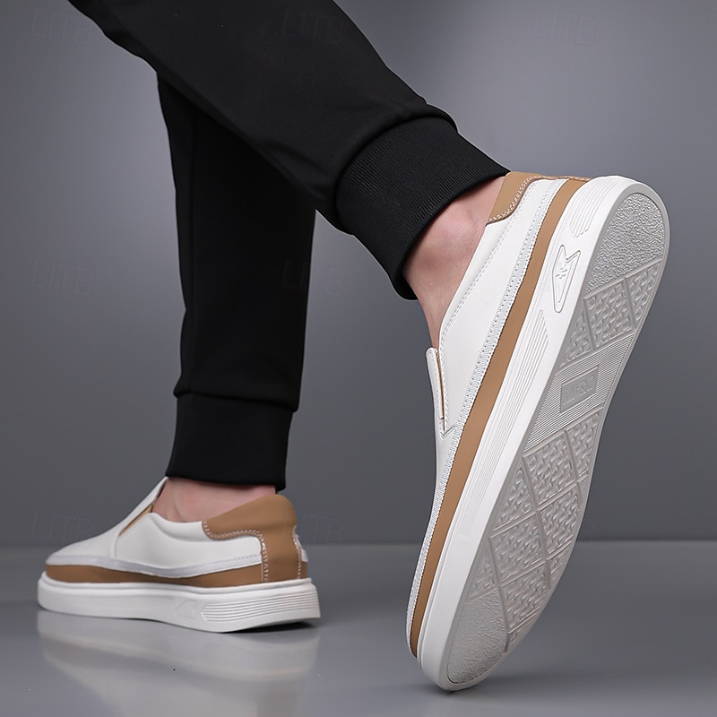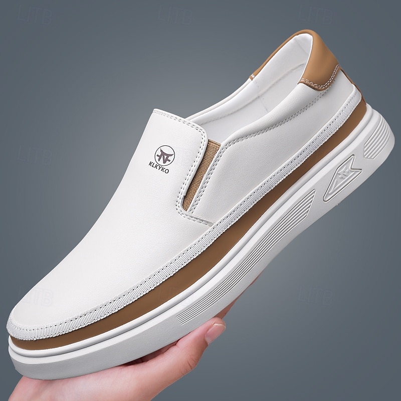 HOT ! Men's White Slip-On Sneakers with PU Accents – Fashionable Lightweight Shoes for Streetwear, Travel and Casual Outfits