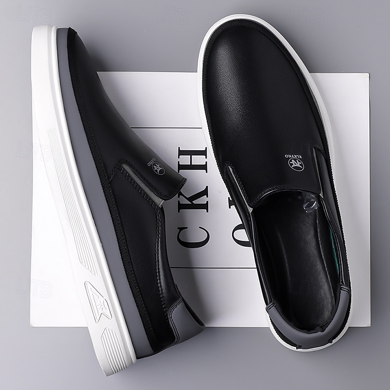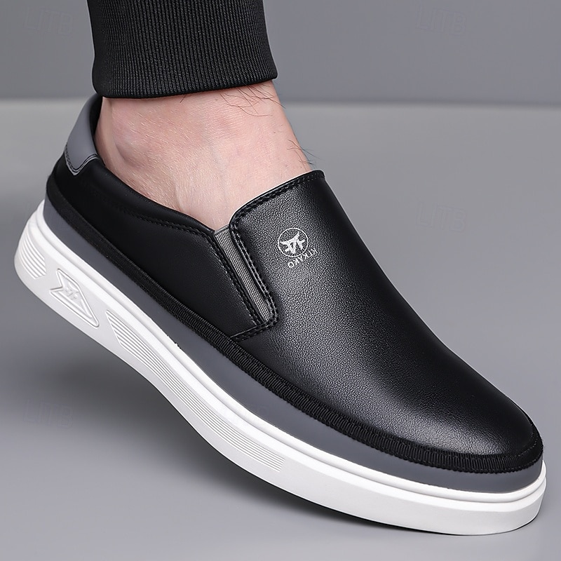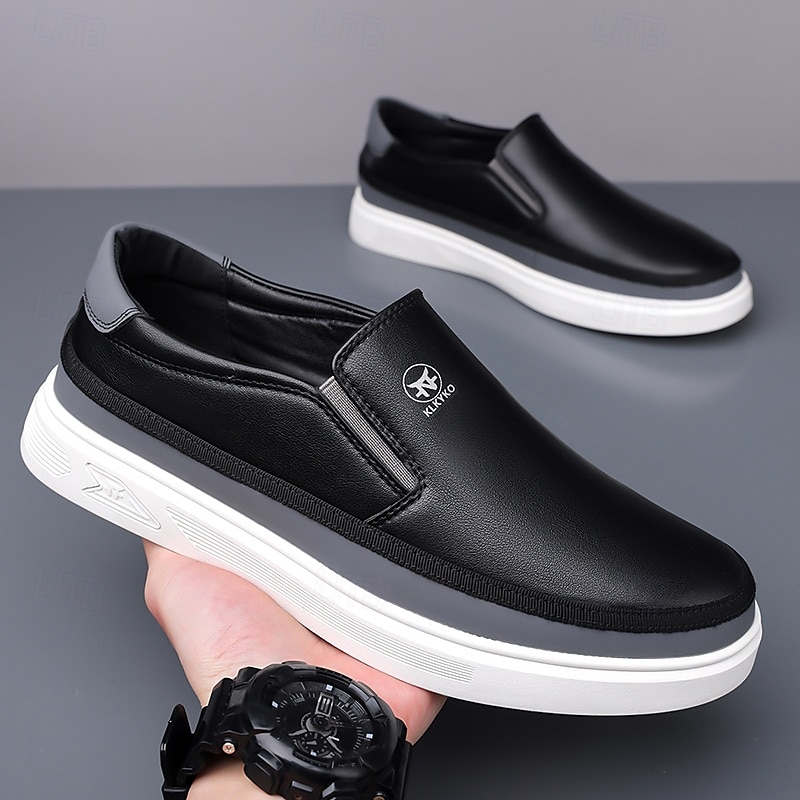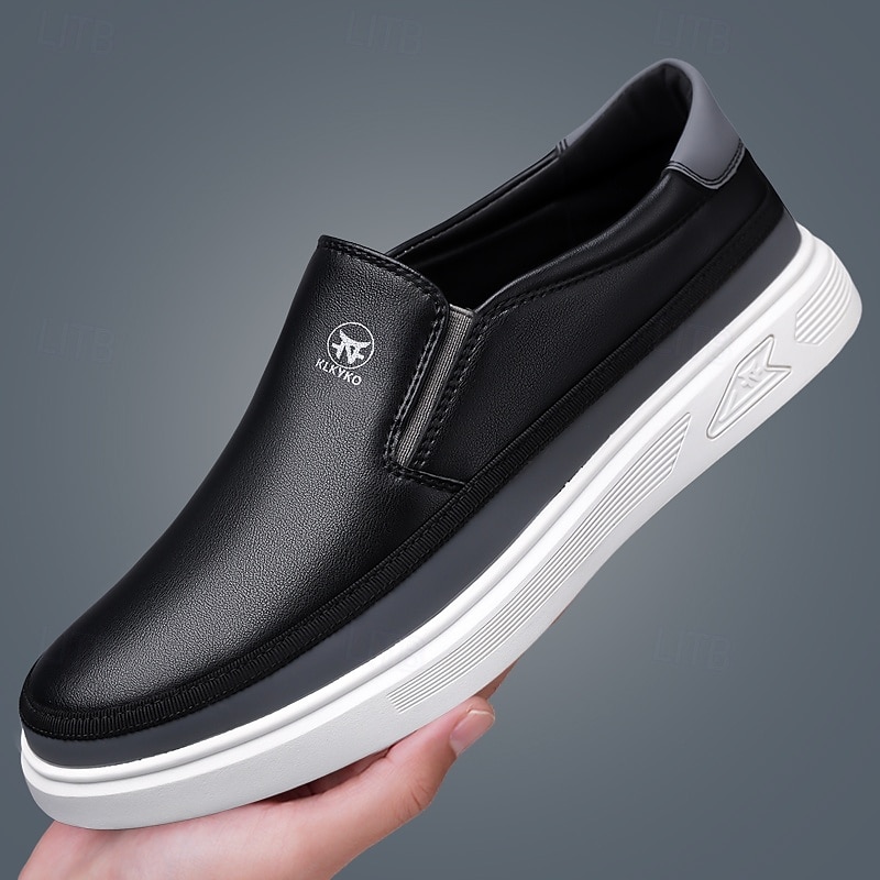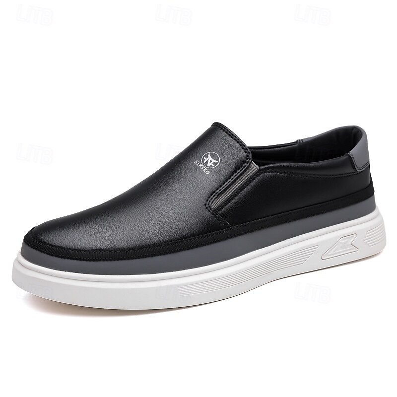 HOT ! Men's White Slip-On Sneakers with PU Accents – Fashionable Lightweight Shoes for Streetwear, Travel and Casual Outfits