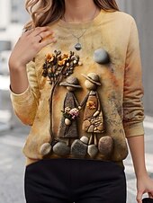 More information about Women's Pullover 3D Print Sweatshirts Graphic Vintage Classic Casual Long Sleeve Crew Neck Regular Tops Home Work Street Print Yellow