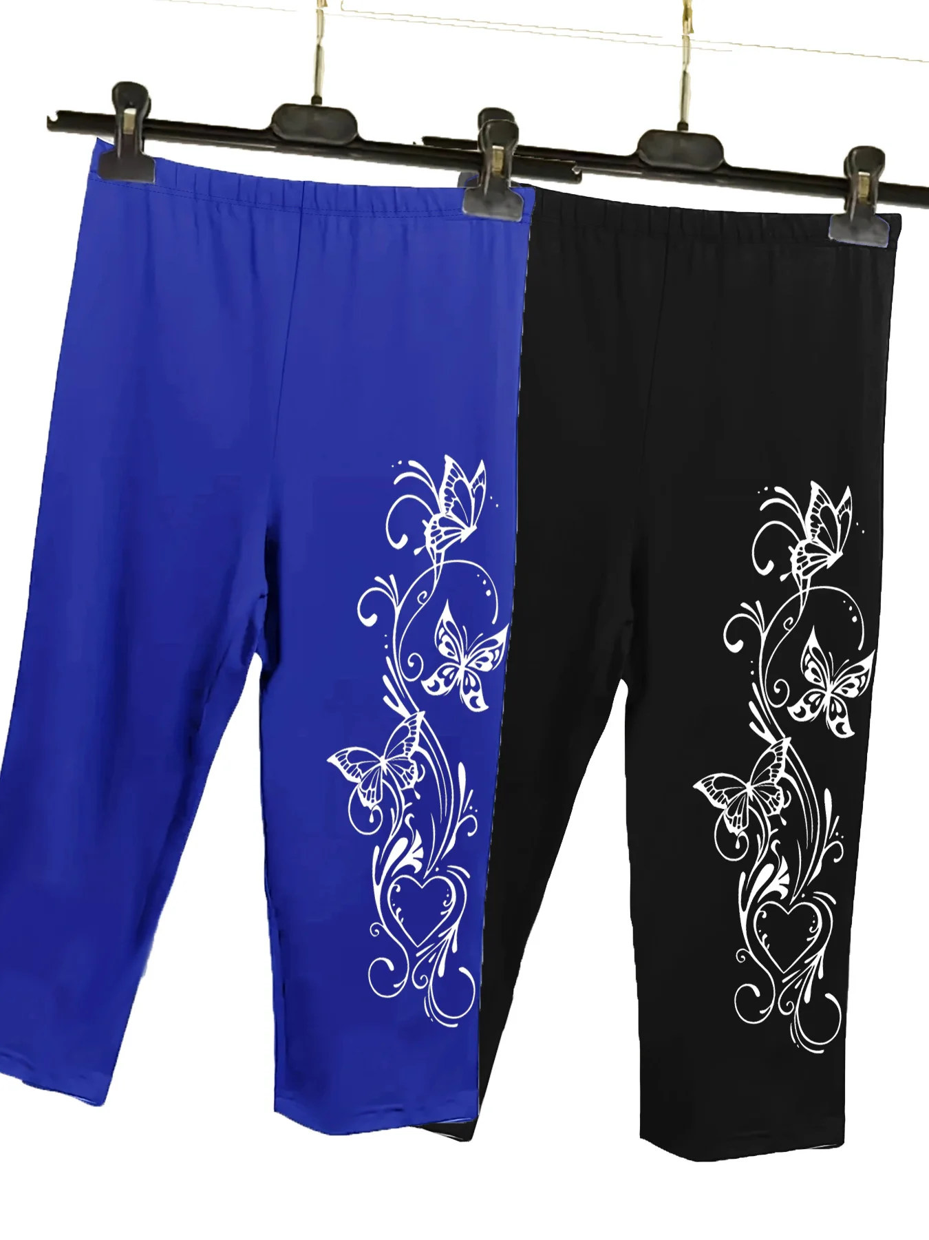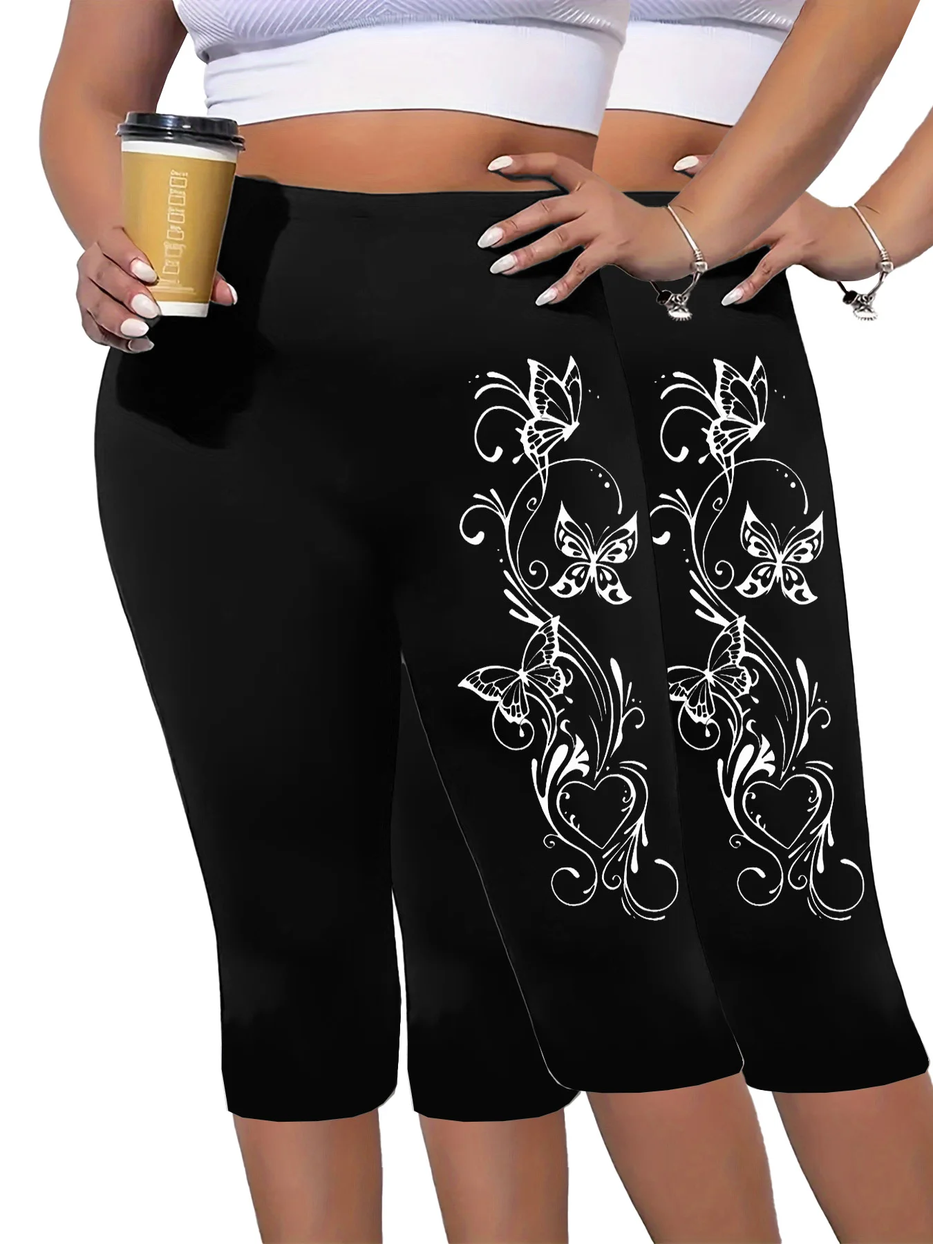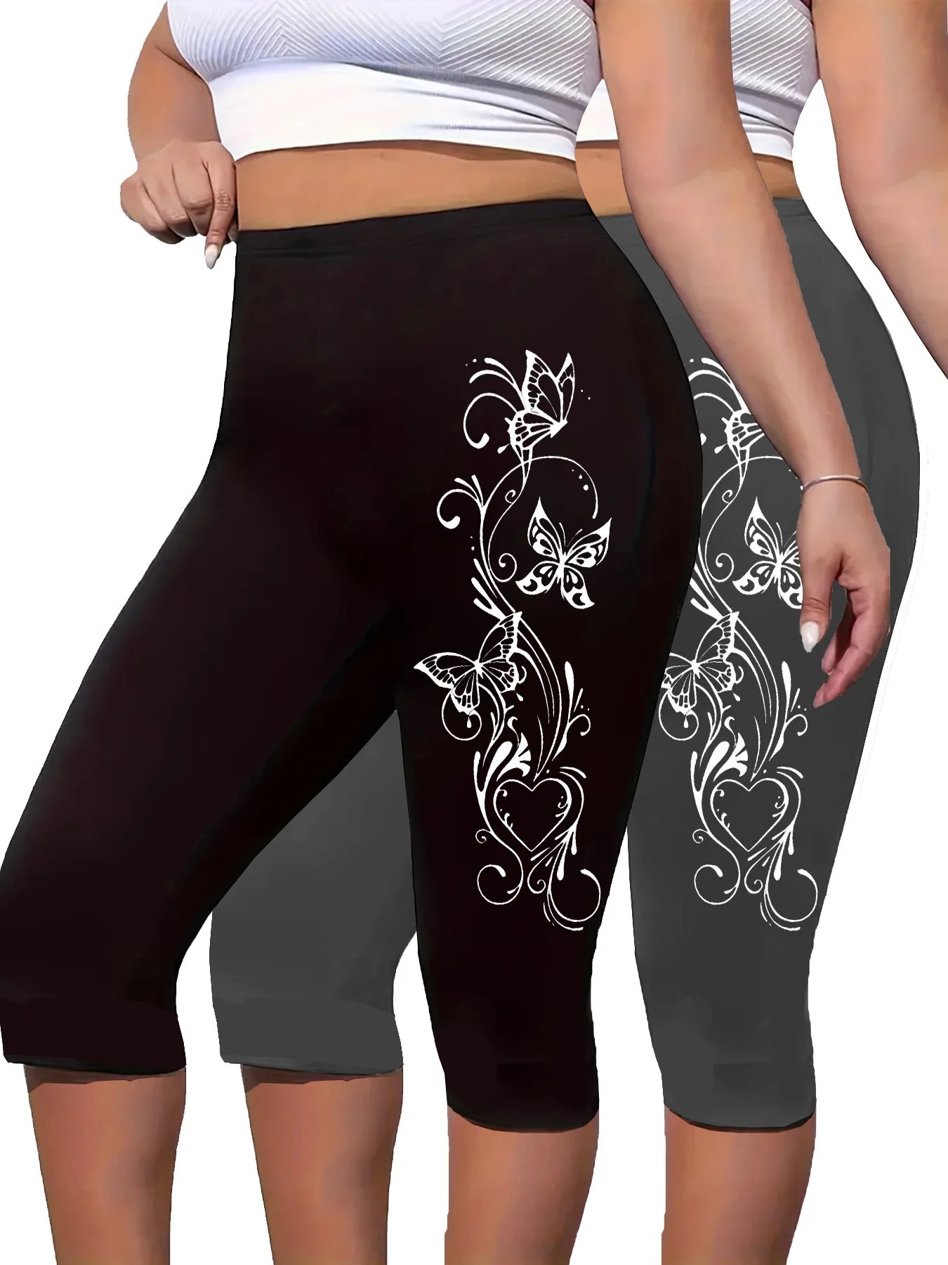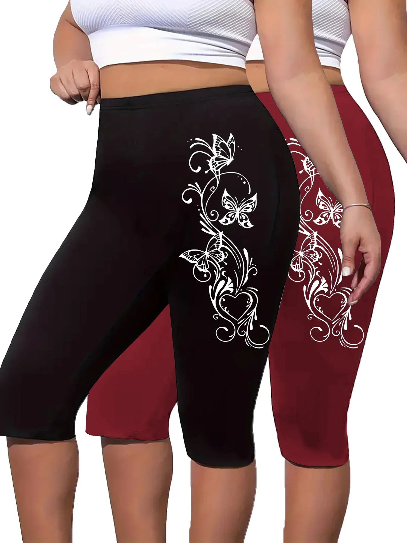 Two Pieces Of Plus-size Women's Printed Cropped Pants, Tight-fitting Cropped Pants, Comfortable Elastic pant