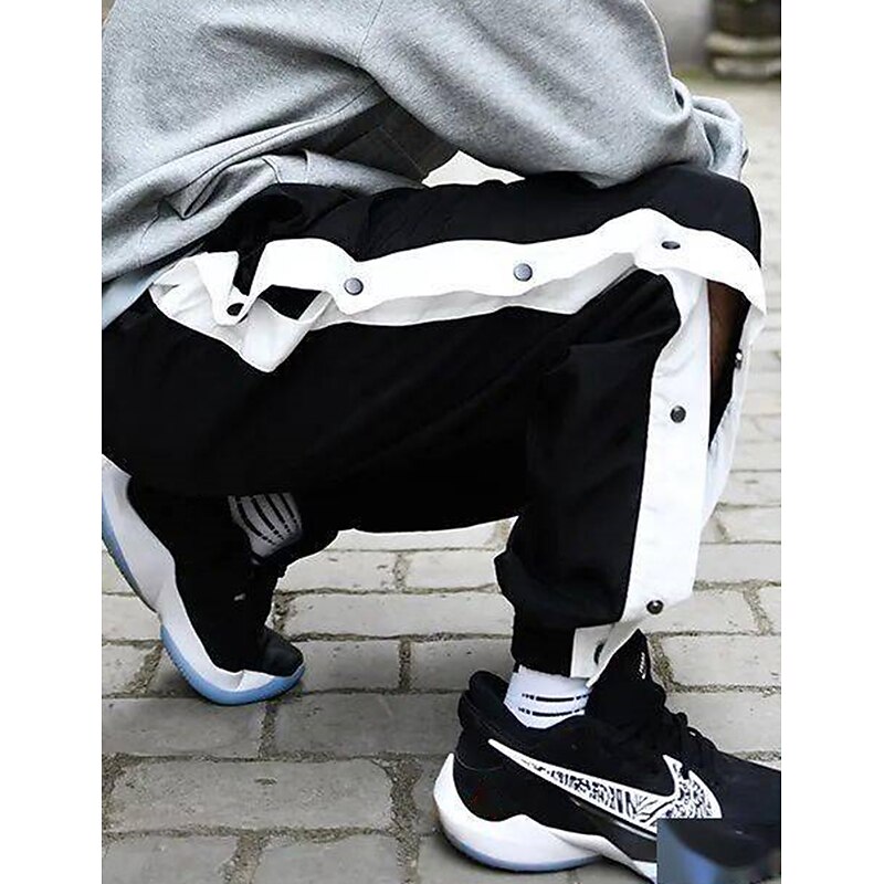 More information about Men's Joggers Tear Away Pants Trousers Straight Leg Sweatpants Pocket Elastic Waist Side Button Plain Comfort Breathable Outdoor Daily Going out Fashion Casual Black