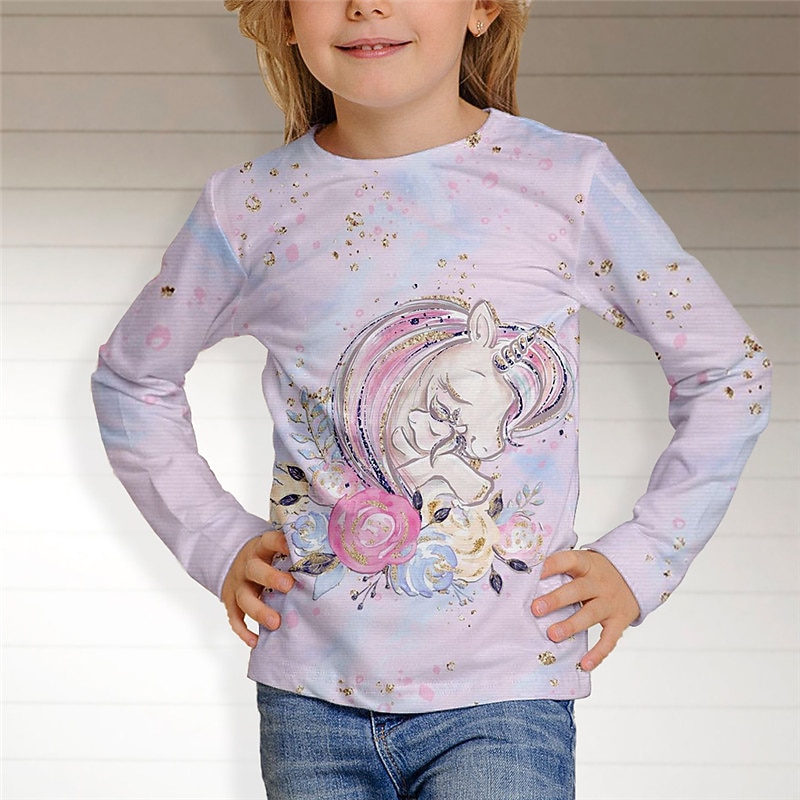 More information about Kids Girls' T shirt Animal Casual 3D Printing Long Sleeve Crewneck Cute 7-13 Years Fall Multicolor White Pink