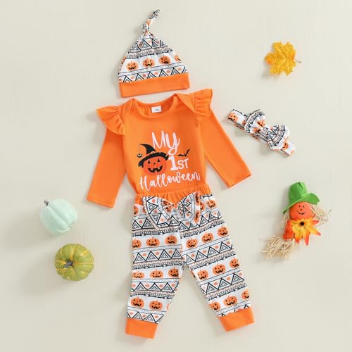 Douhoow Baby Girls Fall Clothes1st Halloween/1st Christmas Baby Romper Pants Headband Hat Infant Girl Festival Outfits 4