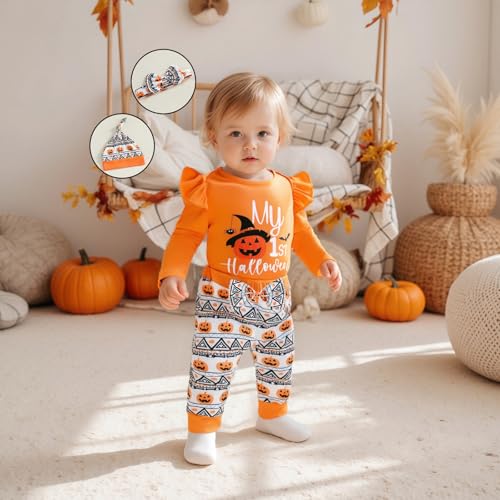 Douhoow Baby Girls Fall Clothes1st Halloween/1st Christmas Baby Romper Pants Headband Hat Infant Girl Festival Outfits 2