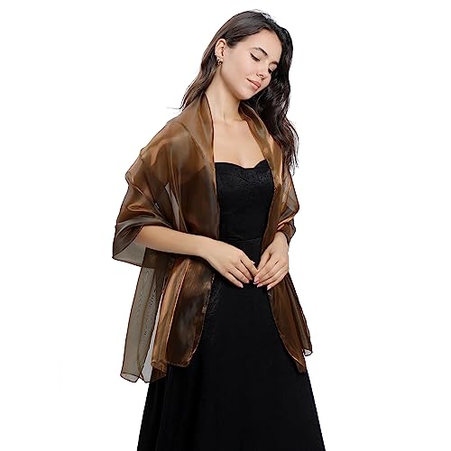 • SILKY FABRIC: Stylish Sparkly silky shawl can add perfect finishing touch to your special occasion look. The unique organza shawl will have subtly different colours when exposed to different light indoors and outdoors, making you even more glamorous. Perfect for dressing up any evening look. The skin-friendly and soft shawl can be worn comfortably for a long time.