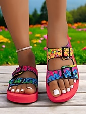 More information about Women's Colorful Butterfly Sandals with Adjustable Buckle – Vibrant Summer Slip-On Sandals for Beach, Vacation & Casual Wear