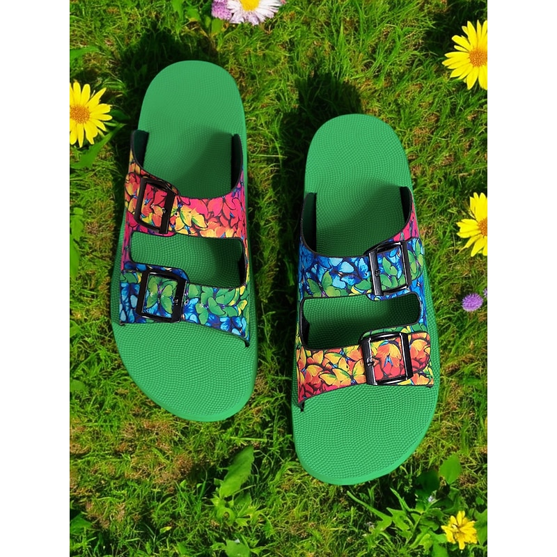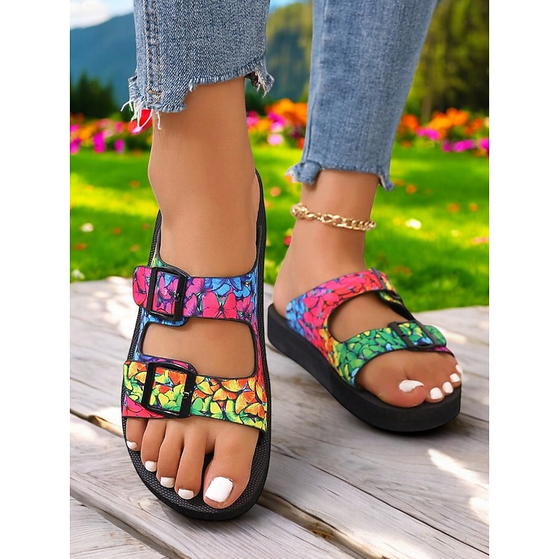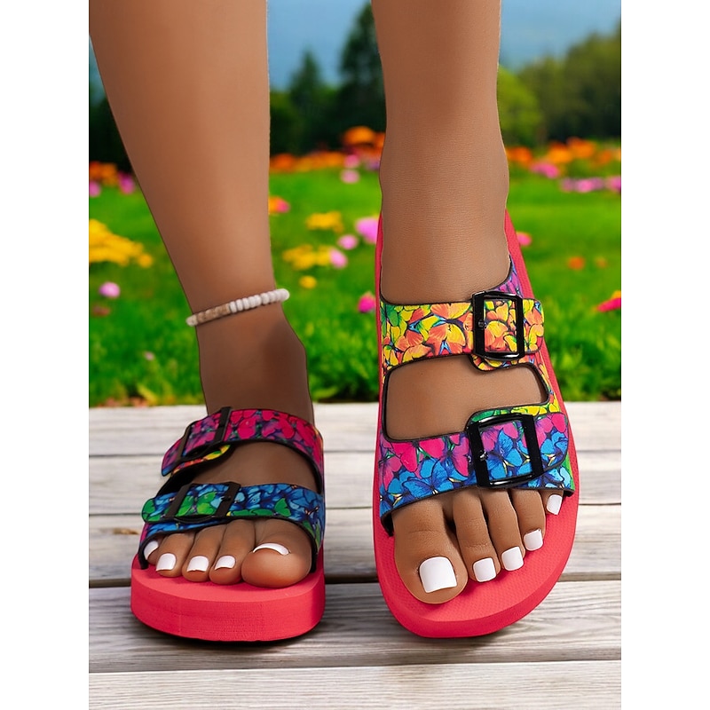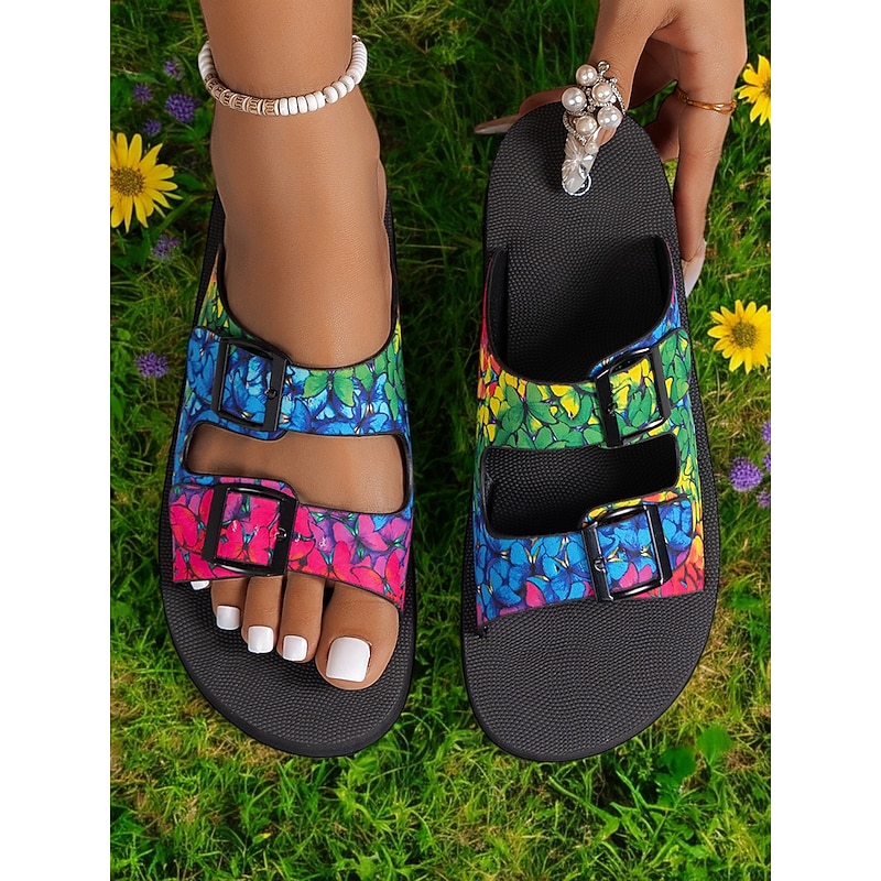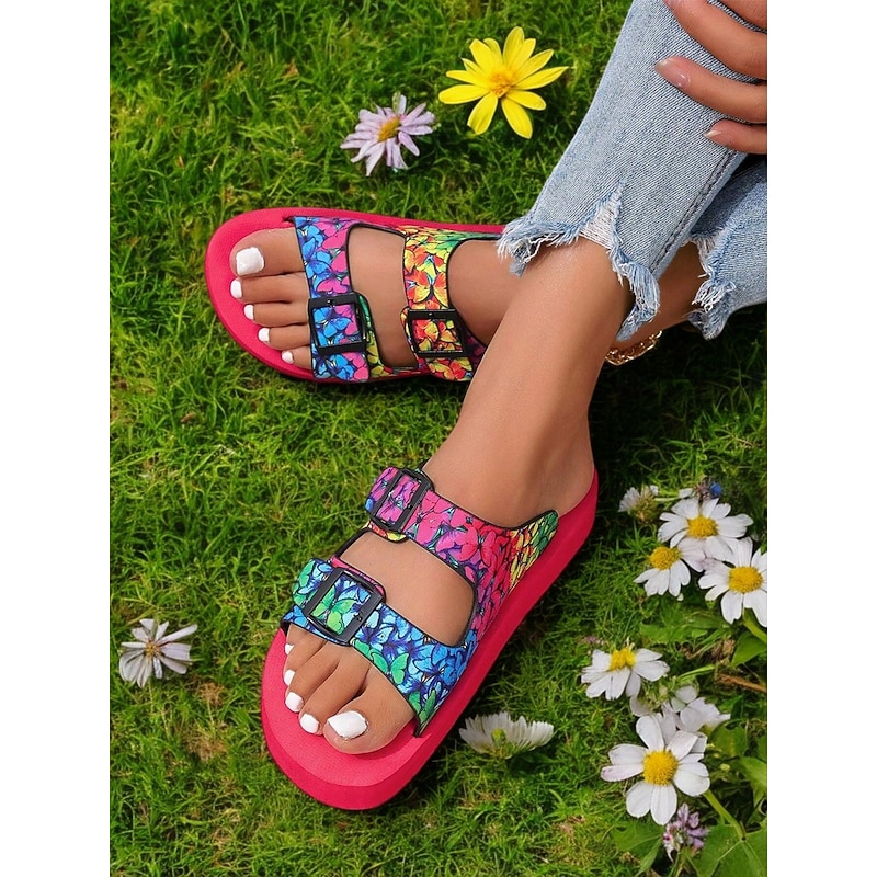 Women's Colorful Butterfly Sandals with Adjustable Buckle – Vibrant Summer Slip-On Sandals for Beach, Vacation & Casual Wear 25