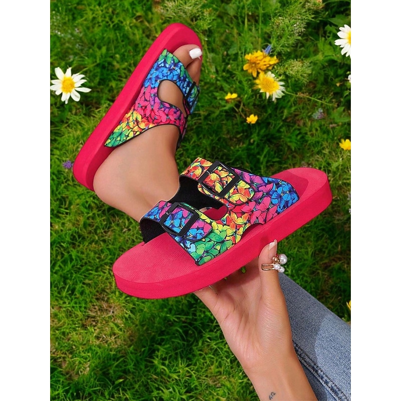 Women's Colorful Butterfly Sandals with Adjustable Buckle – Vibrant Summer Slip-On Sandals for Beach, Vacation & Casual Wear 24