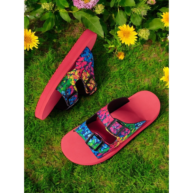 HOT ! Women's Colorful Butterfly Sandals with Adjustable Buckle – Vibrant Summer Slip-On Sandals for Beach, Vacation & Casual Wear