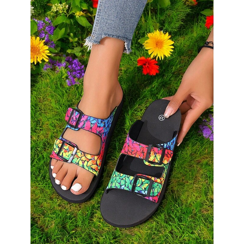 Women's Colorful Butterfly Sandals with Adjustable Buckle – Vibrant Summer Slip-On Sandals for Beach, Vacation & Casual Wear 1