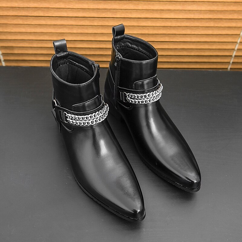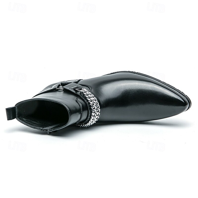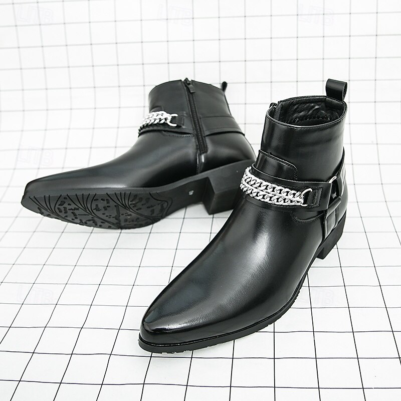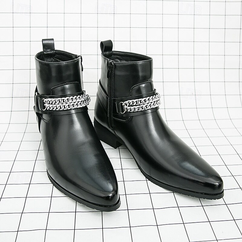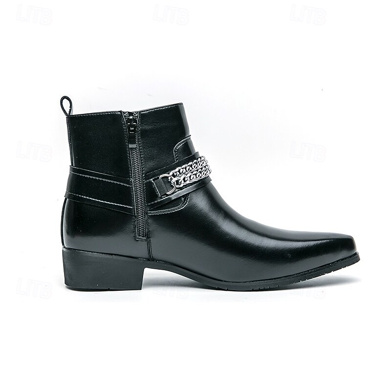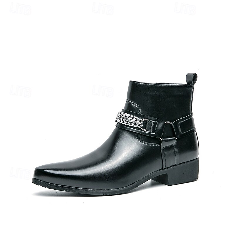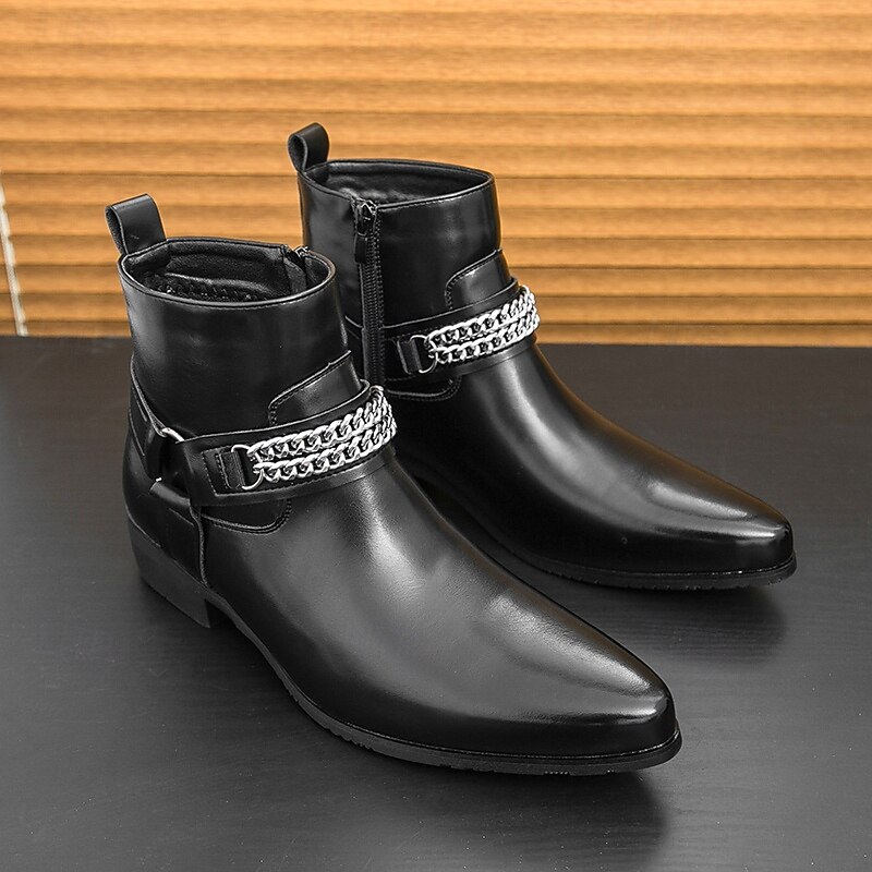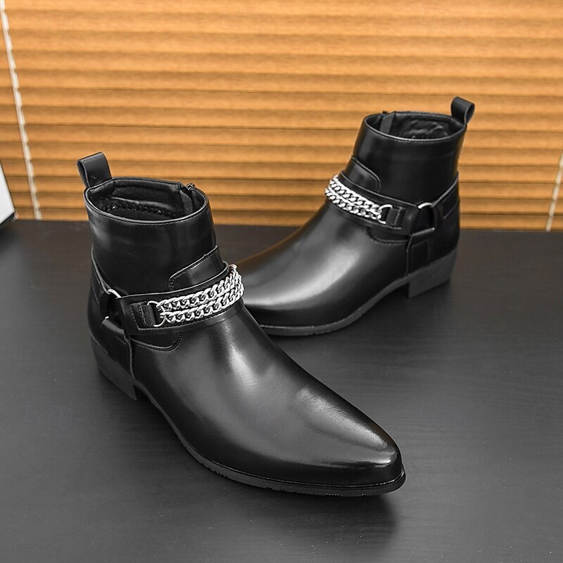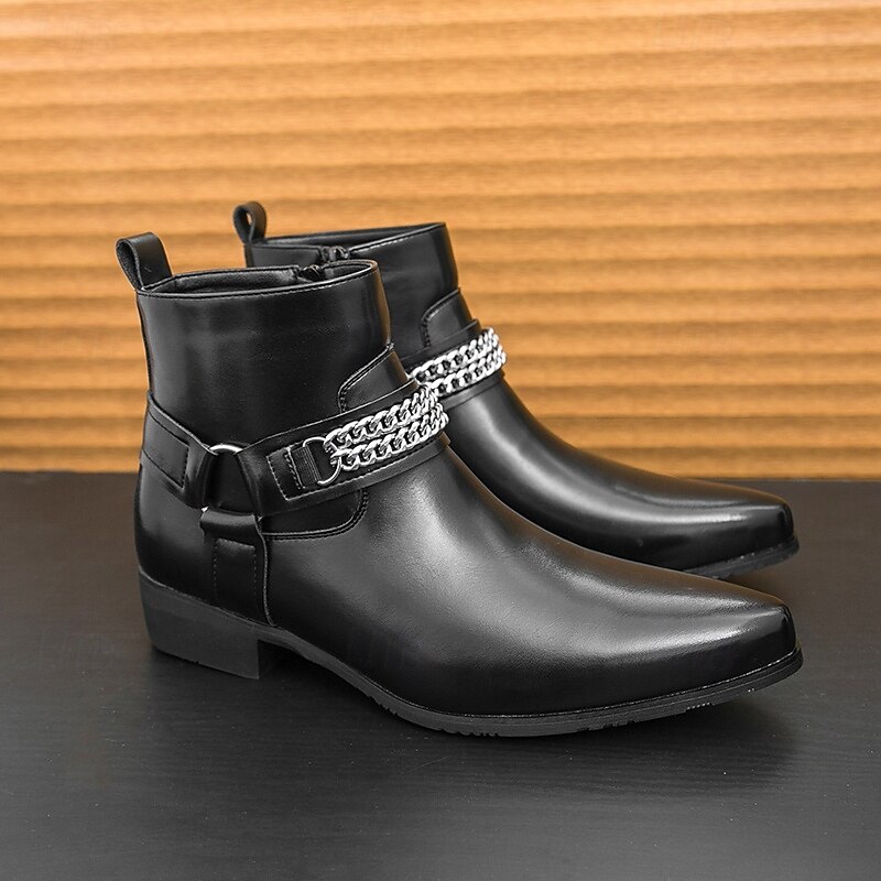 More information about Men's Brown Faux Leather Chelsea Boots with Chain Accent, Sleek and Modern Look for Formal Office Attire, Parties and Evenings Out