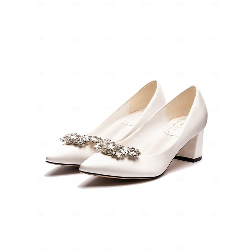 HOT ! Women's White Block Heel Wedding Pumps – Elegant Bridal Shoes with Crystal Brooch
