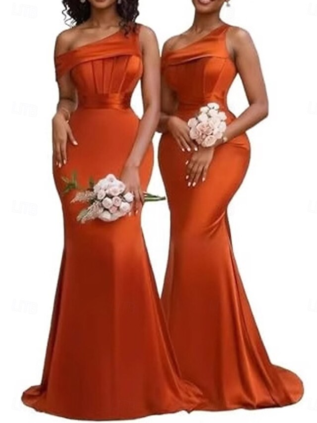 More information about A-Line Bridesmaid Dress One Shoulder Sleeveless Elegant Floor Length Chiffon with Split Front 2022