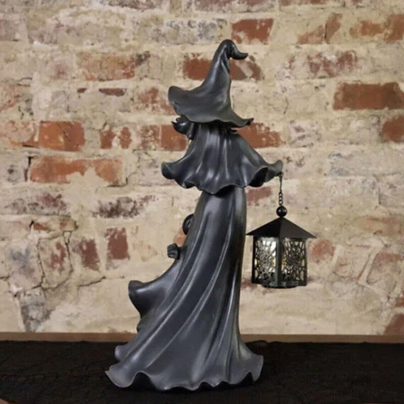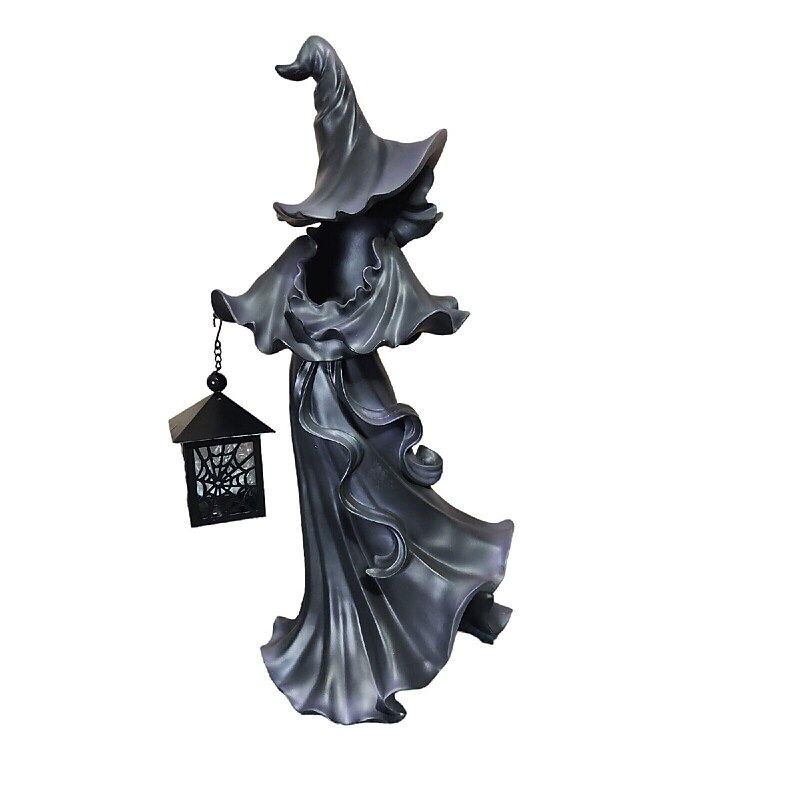 HOT ! Cracker Barrel Witch Halloween Decoration Ghost with Lantern Faceless Ghost Sculpture Witch Ghost Lamp Hell Messenger Holding Lantern Statue Realistic Halloween Theme Props