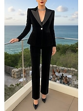 More information about Women's 2 Pieces Suits Formal Wedding Guest Satin Velvet Elegant Minimalist Long Sleeve Ankle Length Peak Lapel Single Breasted