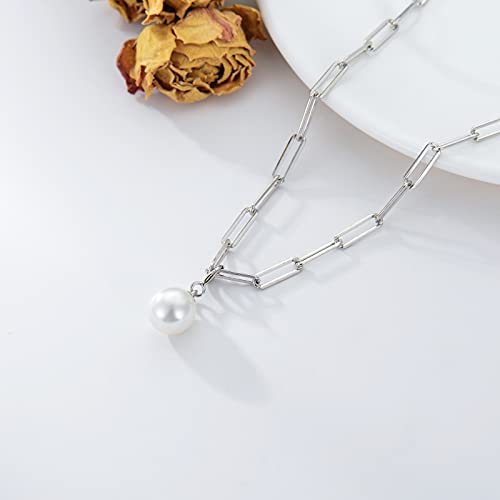 More information about Paper Clip Necklace Removable Pearl Pendant Chunky Link Chain Sterling Silver Dual Purpose Necklace Fashion Charm Jewelry for Women