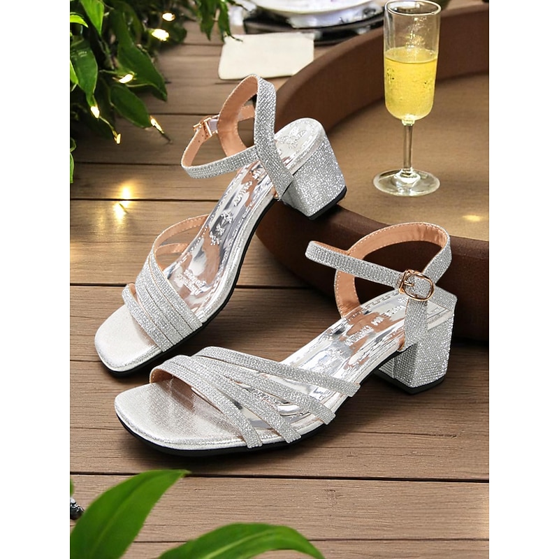Highlights - Sparkling glitter upper adds a touch of glam to your look - Synthetic leather lining for a comfortable fit - Sturdy block heel for stability and support - Stylish open toe design perfect for showing off your pedicure - Durable rubber outsole for long-lasting wear