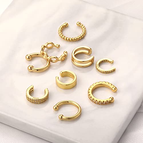 9Pcs Ear Cuff 14K Gold Plated Ear Cuffs for Women Non Piercing Cartilage Cuff Earrings Ear Clips Jewelry 6
