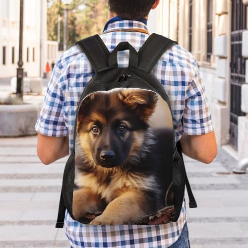• Large Capacity: 11.8"x4.5"x16.1". Large Carry On Travel Backpack, A separate laptop compact, the maximum can accommodate a 15.6 inch laptop, German Shepherd Puppy business backpack for menwomen has two mesh pouch, With this water bottle pouch, you can easily carry your cup