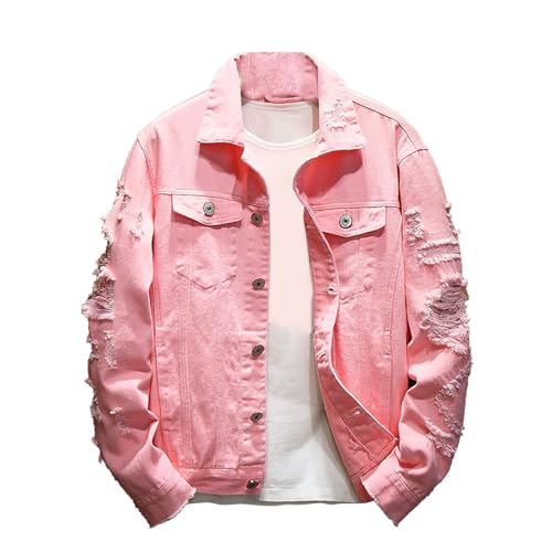 Men Casual Distressed Jacket Classic Fit Trucker Style Denim Shirts Regular Outerwear Cowboy Cut Fashion Jean Coat Tops 5