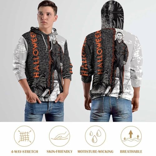 ZHANGXM Athletic All-Print Pullover Halloween Michael Myers 3D Printing Hoodie Sweatshirts Adult Men Casual Streetwear 3