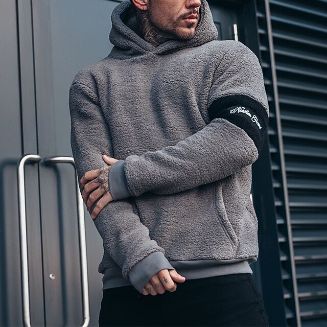 More information about Men's Hoodie Fleece Hoodie Black Gray Hooded Plain Patchwork Sports & Outdoor Casual Daily Streetwear Cool Sportswear Winter Clothing Apparel Hoodies Sweatshirts