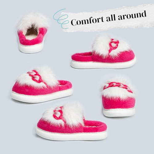Cloeh | Cozy Women's Slippers with Plush Anti-Shed Fur, Non-Slip Thick EVA Sole, Lightweight Indoor Outdoor House Shoes, Stylish Pull-On Footwear, Gifts for Women & Teens 6