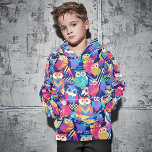 KLL Cute Colorful Owls and Trees Toddlers and Girls' Sweatshirts Casual Pullover Top Streetwear Kangaroo Pocket 4