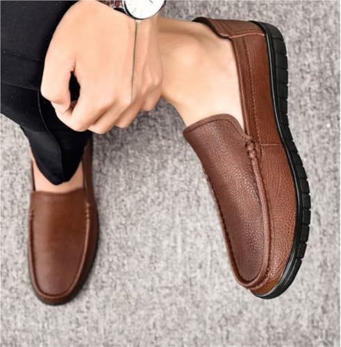 Mens Leather Slip On Lightweight Loafers Simple Moccasins Flexible Flat Heel Comfortable Walking Casual Shoes 5