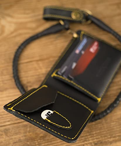 Trip Machine Company Bifold Motorcycle/Biker Genuine Leather Wallet with Braided Chain - Black "Lucille" 1