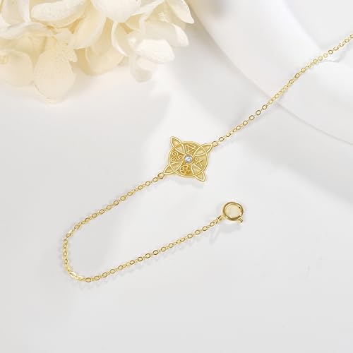 • 【14K Gold Witches Knot Bracelet】 Witches knot (nudo de brujas), is comprised of four interlocking knots. Witches knot helps to protect against spells and negativity, promotes happiness as well as the circle of life. A four point shape of Celtic knot wrapped in a silver circle, Celtic knots are complete loops that have no start or finish and could be said to represent eternity, means loyalty, faith, friendship or love.