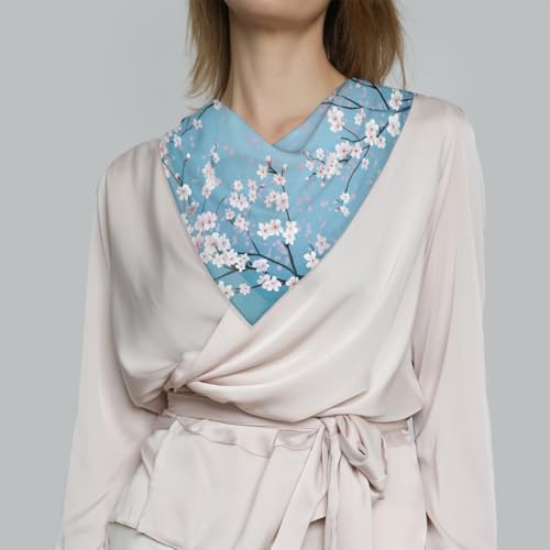 Silky Scarf 23.6" Fashion Neckerchief Purse Scarf Printed Hair Scarf for Women Girls (Japanese Cherry Blossom Flower) 1