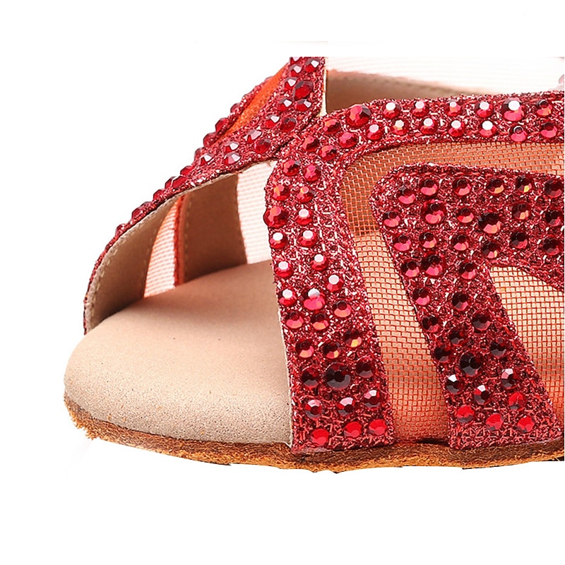 : Crafted from high-quality synthetic materials, these women's dance shoes are embellished with rhinestones and tulle, offering a sparkling, sophisticated appearance that’s perfect for any special occasion. The inner lining is made from soft fabric, ensuring comfort during extended dance sessions.