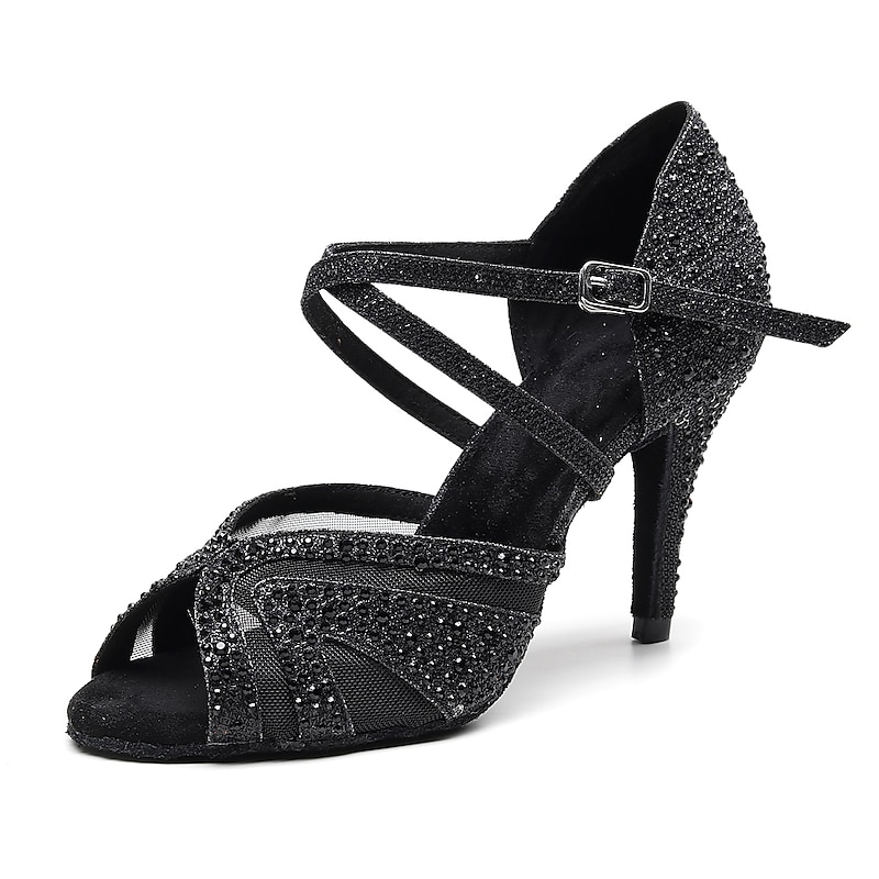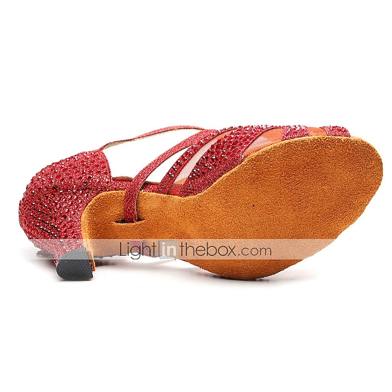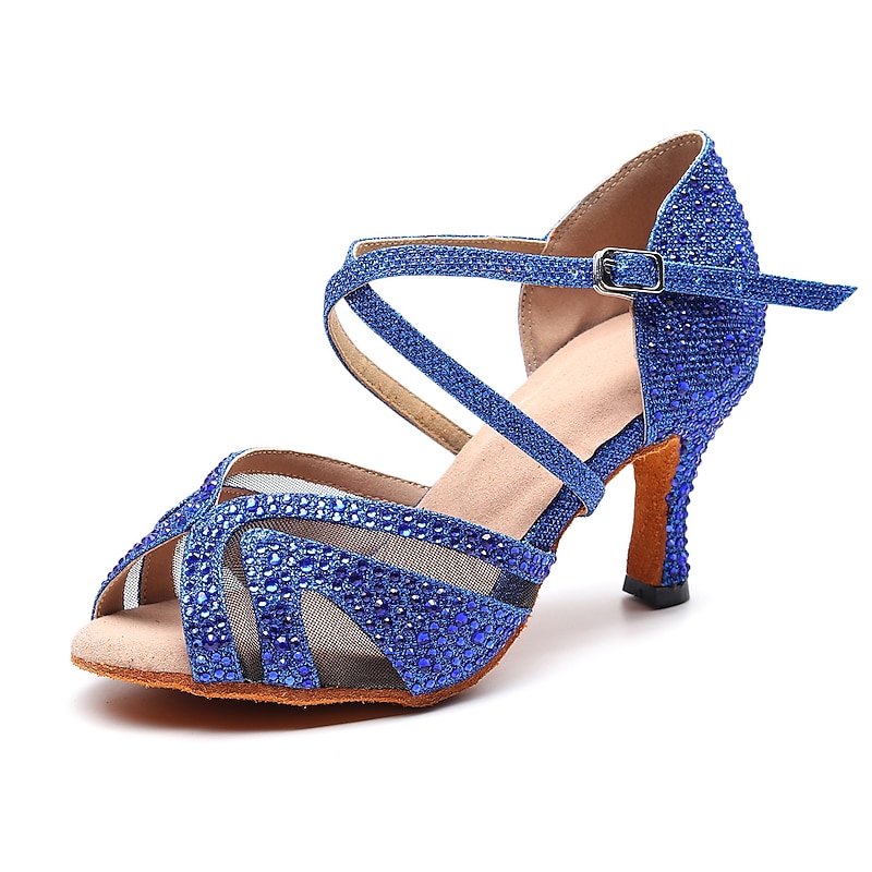 : With glittering crystal embellishments and a sophisticated Cuban heel at 2 3/4 inches (7 cm), these dance shoes bring a touch of elegance and modern flair. The rhinestone accents add just the right amount of sparkle, making them a standout choice for dance enthusiasts.