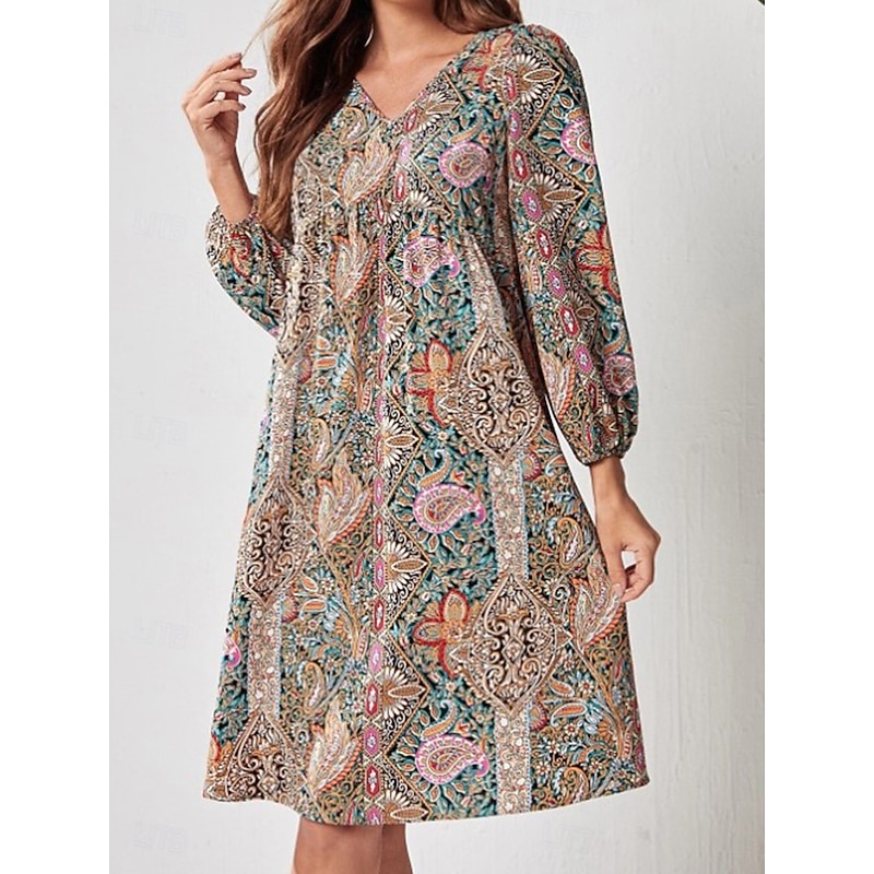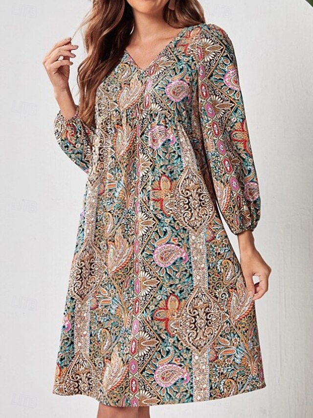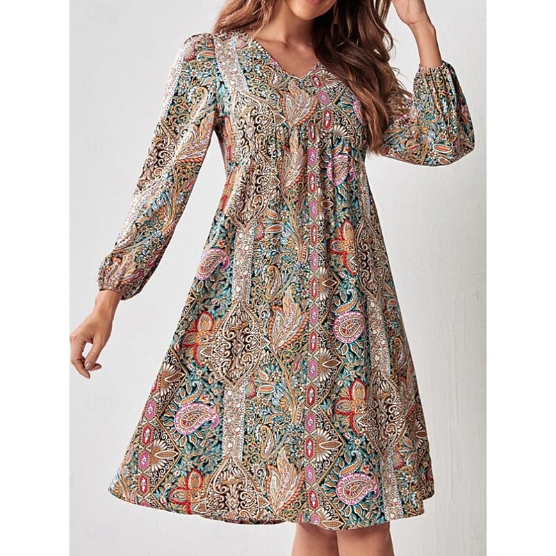 More information about Women's Mini Dress Petite Dress Vintage Dress A Line Dress Boho Dress Stylish Casual Vacation Daily Regular Fit Floral Long Sleeve V Neck Red Summer