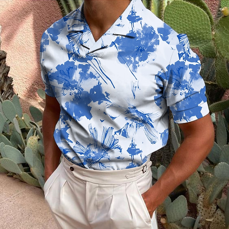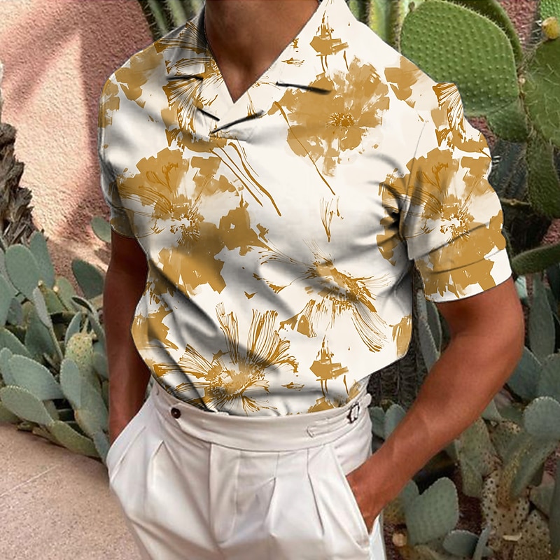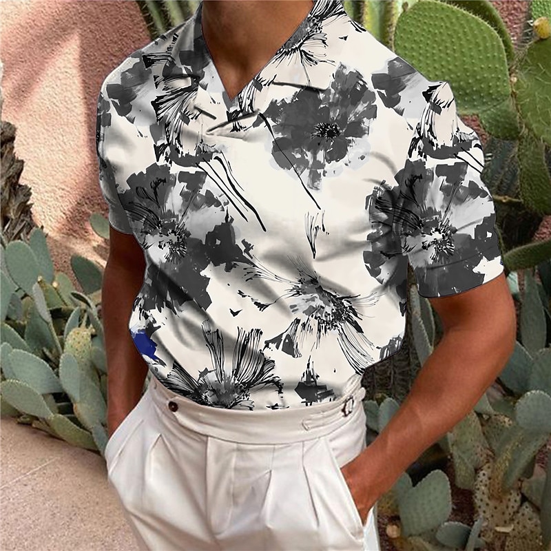 Men's Floral Polo Shirts Golf Shirt Short Sleeve Shirt Turndown Casual Daily 3D Print White Yellow Red Blue Green 3D Print Print Clothing Apparel Fashion Designer Casual Breathable 7
