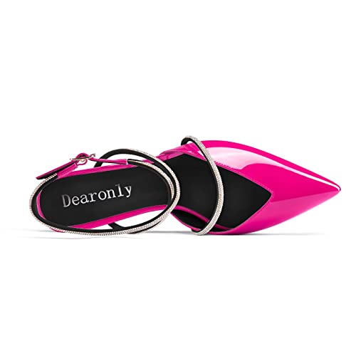HOT ! DearOnly Women Stiletto Mid Heel Pointed Toe Sandals Slingback Ankle Strap Diamond Crystal Wedding Dress 2.6 Inches Heels