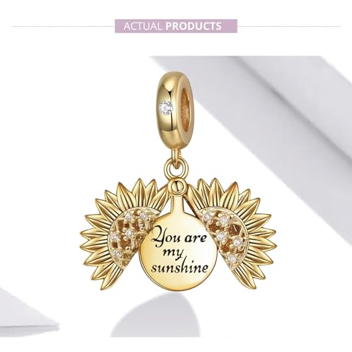 • ❤❤MATERIAL❤❤ Sunflower dangle charm made of environmentally friendly material and AAA zircon,this charm fit Pandola bracelets.Compatible with Biagi, Troll and Chamilia European bracelets. This charm is a small locket with an openable design and a hidden message engraved inside: "You are my sunshine".