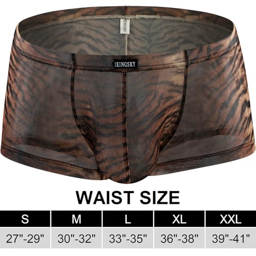 HOT ! IKINGSKY Men's Tiger Stripes Boxer Briefs Breathable Bulge Shorts Underwear Sexy Low Rise Trunk Under Panties